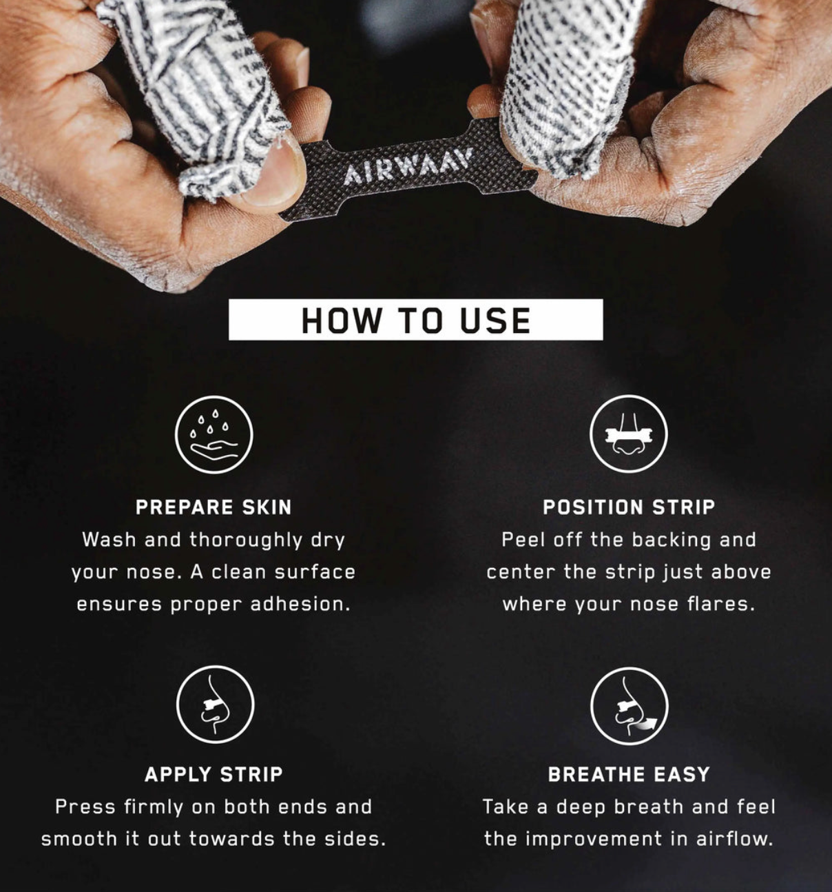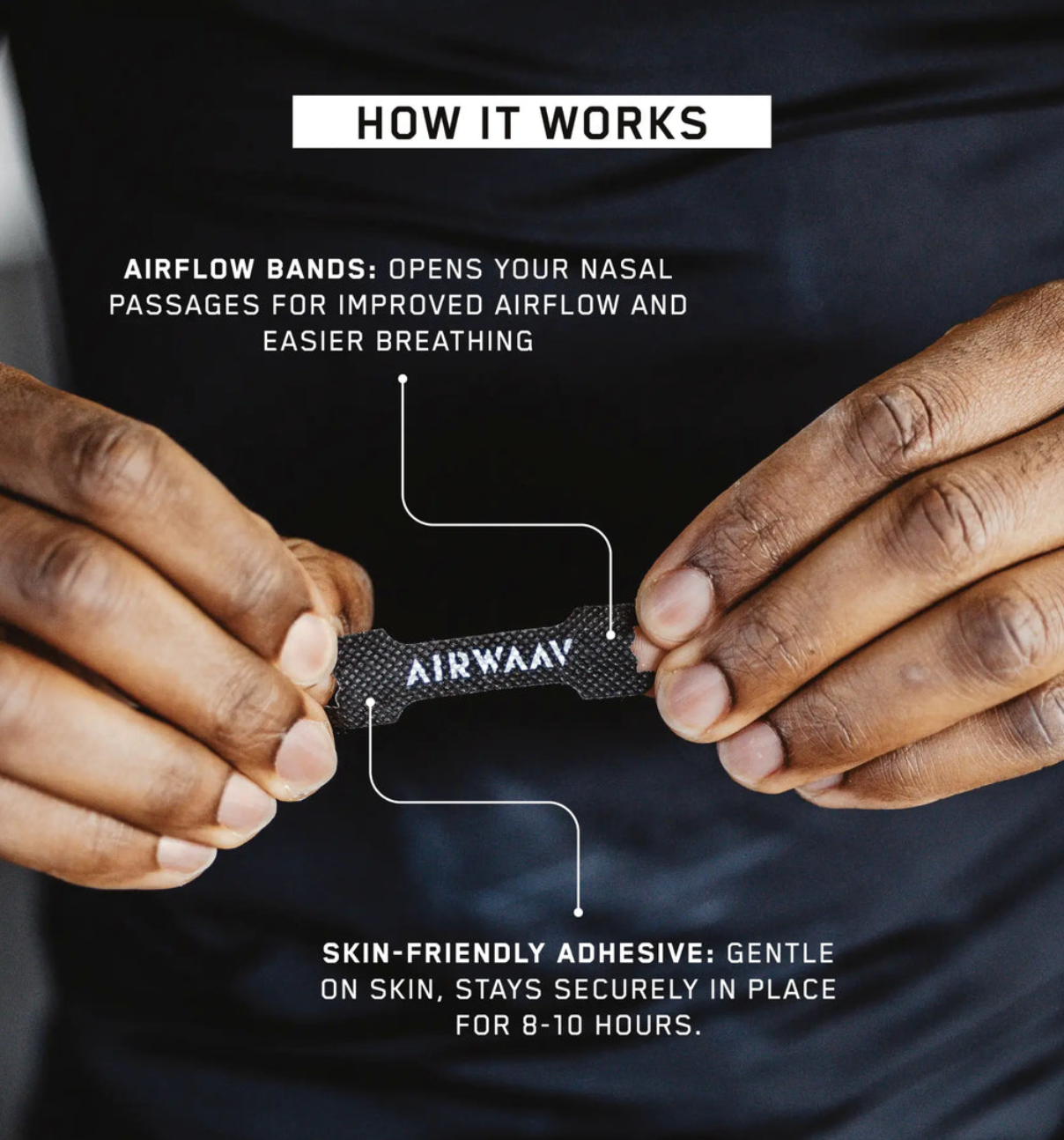 The AIRWAAV Nasal Strips open nasal passages for smoother, more efficient breathing, helping you perform stronger, recover faster, and breathe better in every moment.